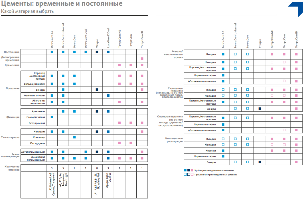 Показания: постоянная фиксация мостовидных протезов, коронок, вкладок и накладок
