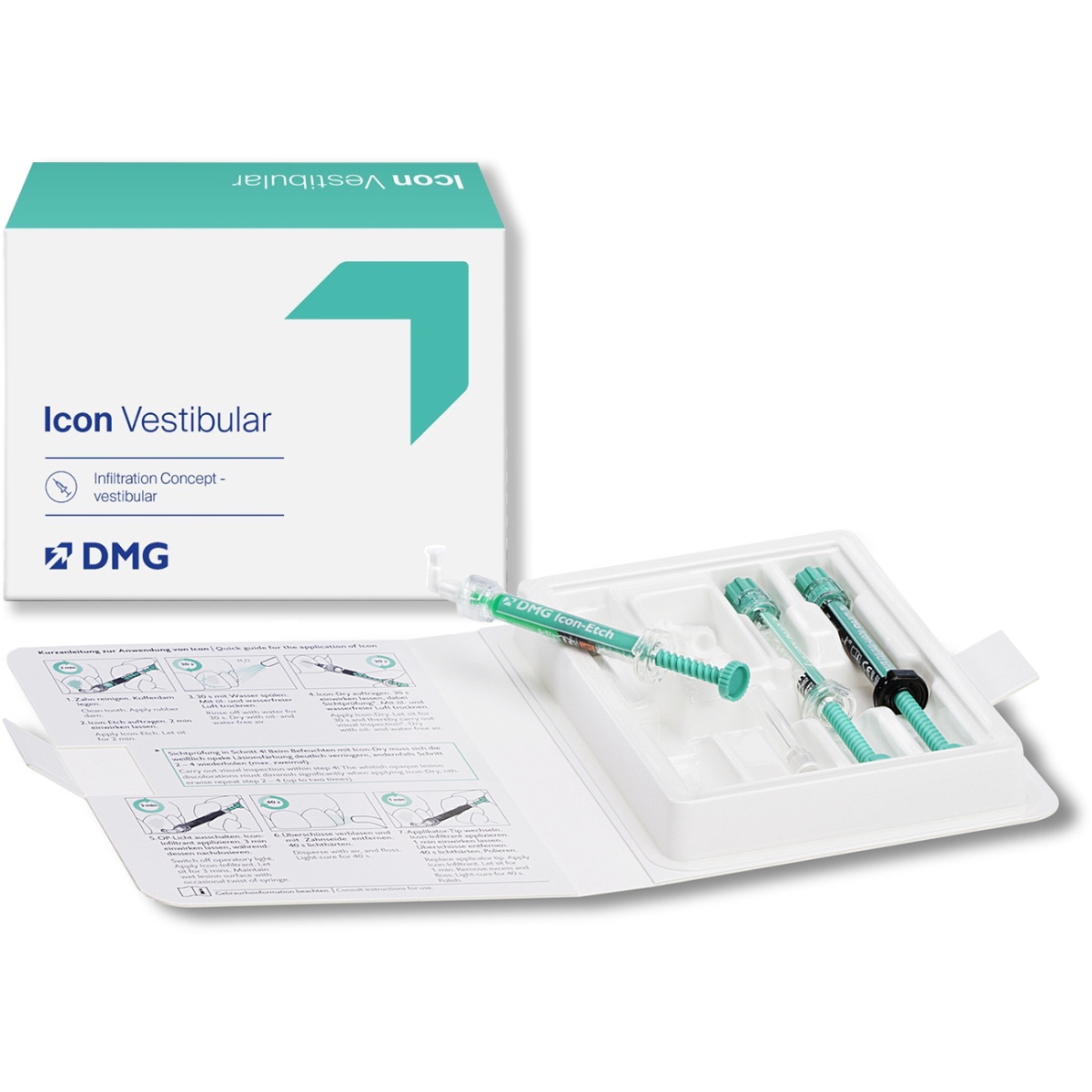 Icon для вестибулярных поверхностей предназначен для устранения белых пятен на вестибулярных поверхностях. Принцип действия следующий: воздух и вода на пораженных участках зуба имеют более низкий коэффициент преломления, чем у здоровых тканей зуба. Это приводит к появлению неэстетичных изменений цвета. Icon компенсирует неприятную разницу и приближает внешний вид пораженного участка к здоровой эмали.
