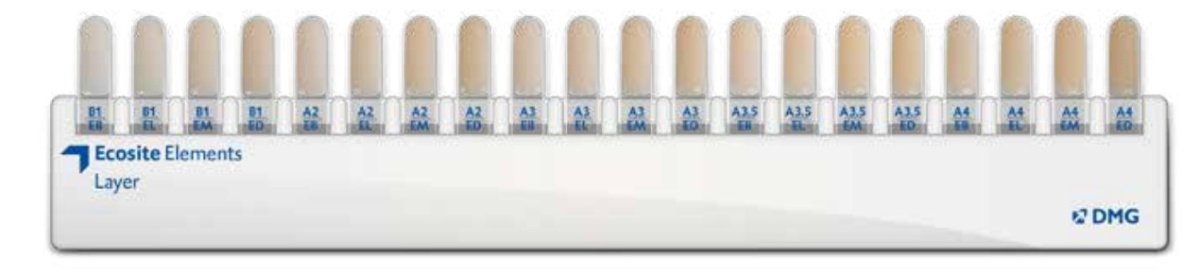 Сочетание оттенков эмали и дентина, предложенное специальной шкалой - Ecosite Elements Shade Guide, позволяет получить реалистичный результат.